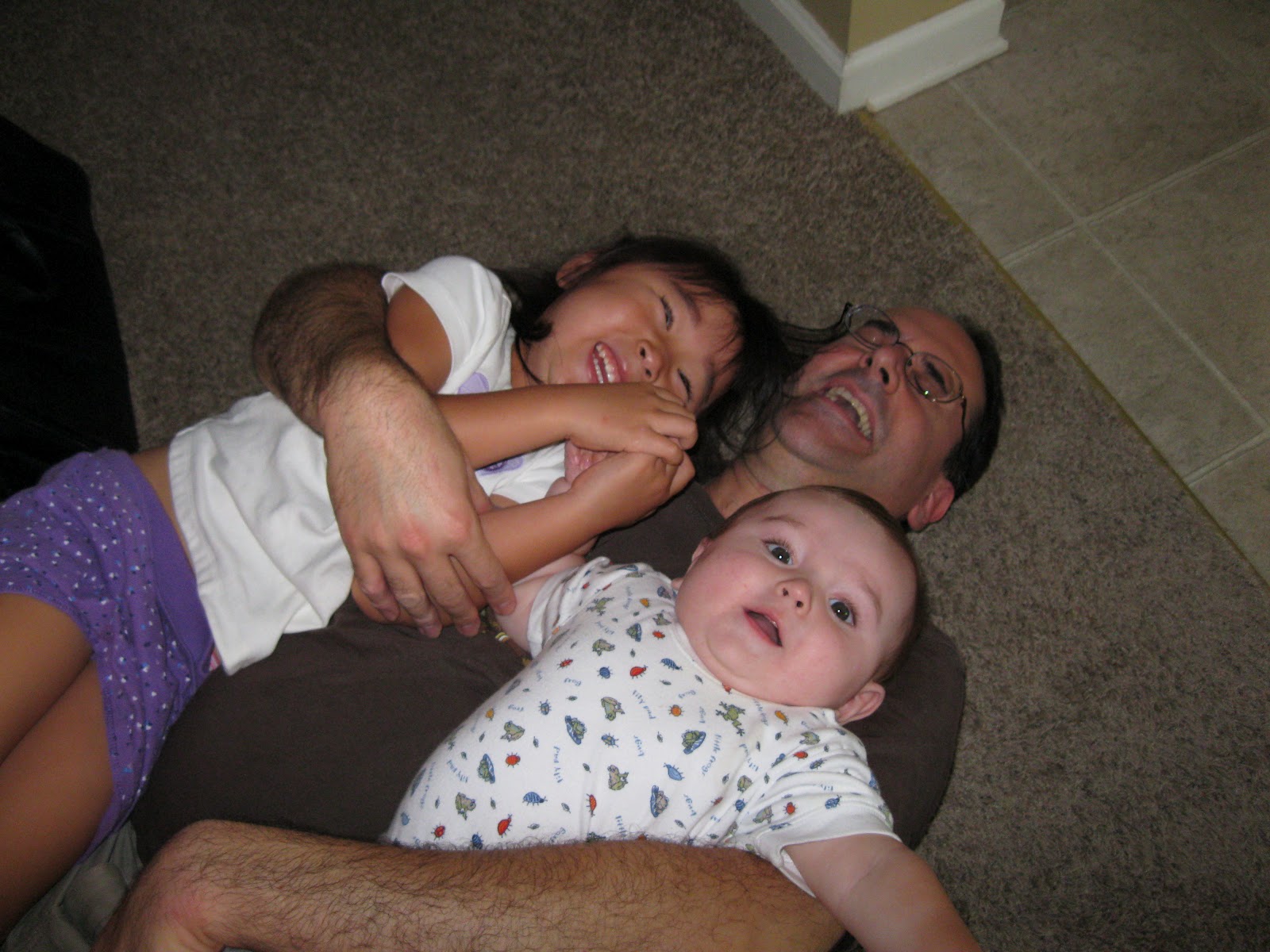 Noah has started rolling all over the place. He can get from one side of the living room to the other and pivots himself in all directions. It won't be much longer until he's crawling.